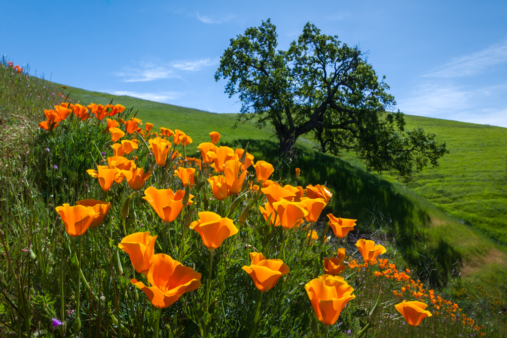 Oak Tree and Poppies